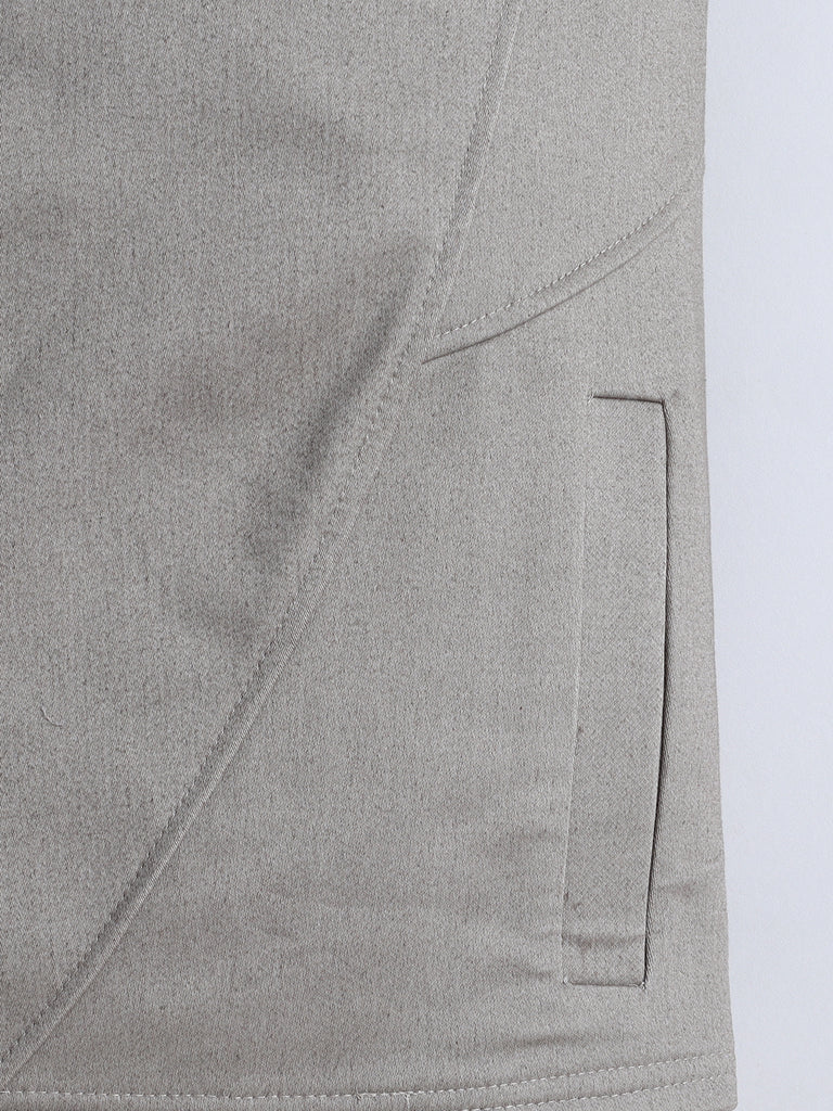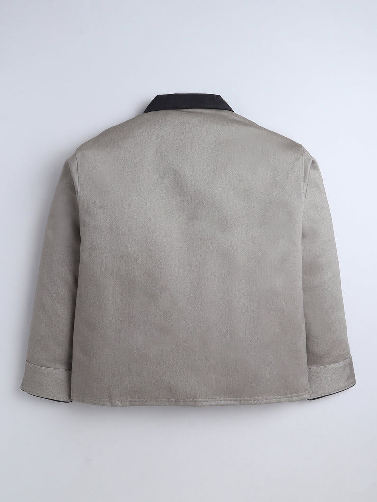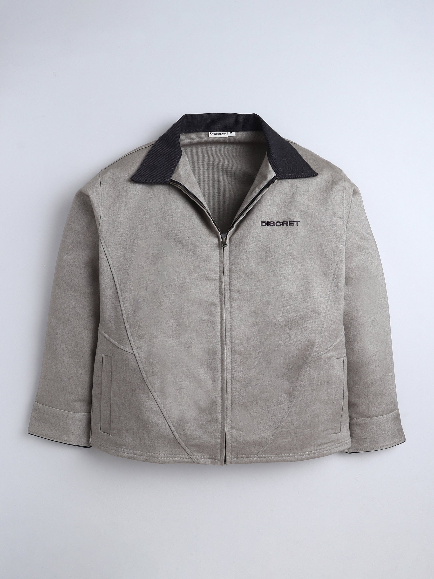 This gender-neutral rustic ivory denim jacket boasts premium quality construction and an elongated wine collar. Inspired by street style, the sleeve cut and panelled pockets add a touch of edginess.